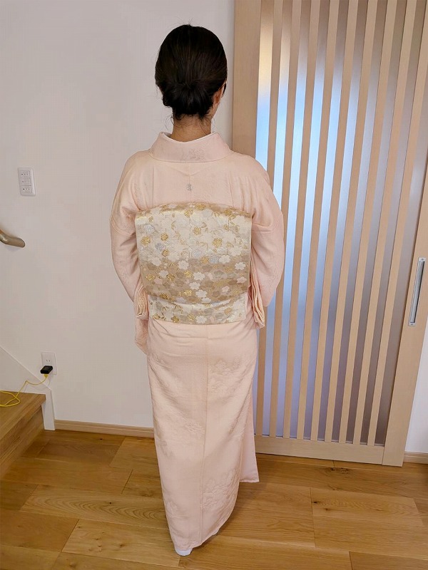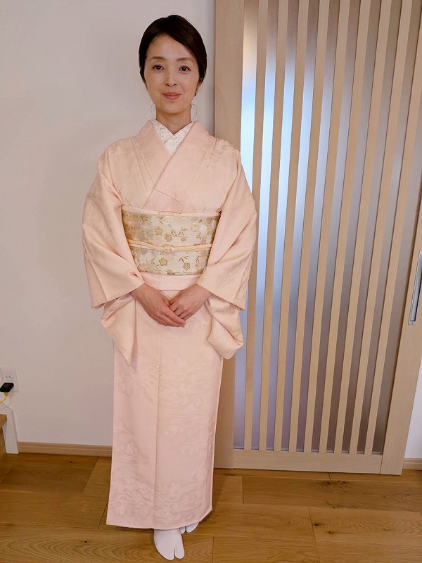 お召しになられたのは、地紋が美しいピンクの色無地(^^)♪