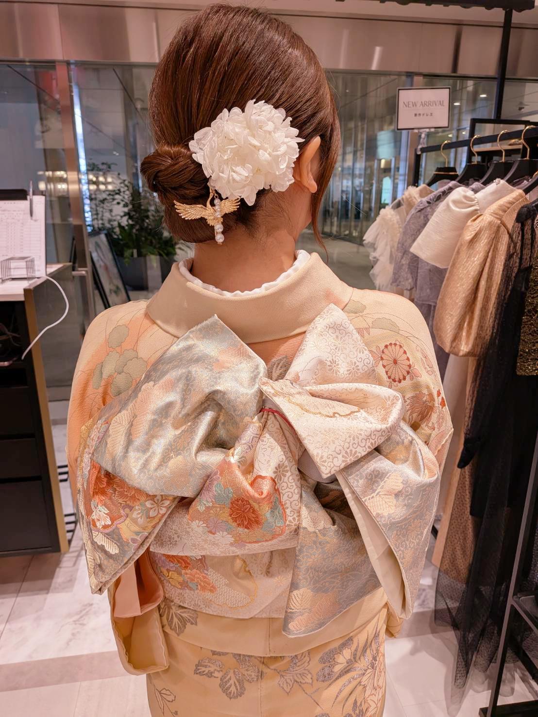 ミナモア内の美容室へ、専門学校の卒業式を迎えられるお客様の出張着付けに伺いました。
