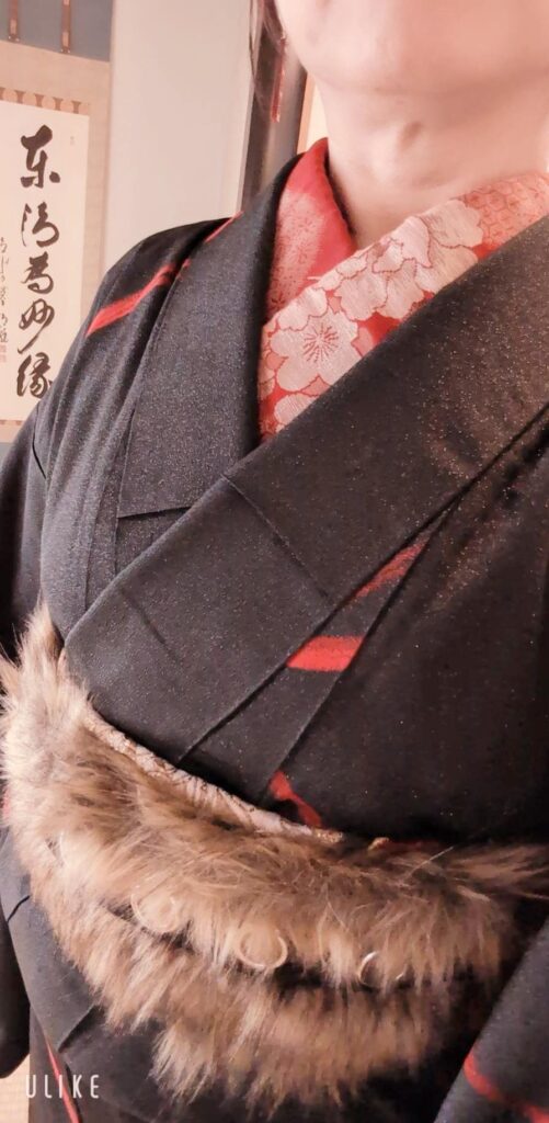 普段のきものとは少し違った、遊び心のあるコーディネートにしてみました。